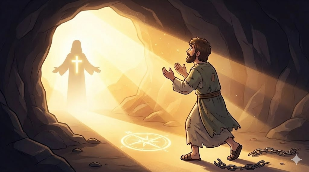 우리는 죄로 인해 빛이신 하나님과 끊어져 어두운 동굴에 갇혔습니다.