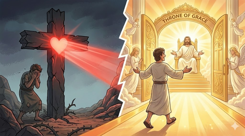 법정의 문이 열리고, 우리는 다시 하나님 품으로 돌아왔습니다.