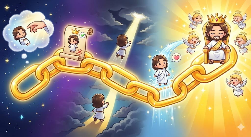 바울은 우리의 구원이 얼마나 확실한지 5단계의 사슬로 설명합니다. (29-30절)