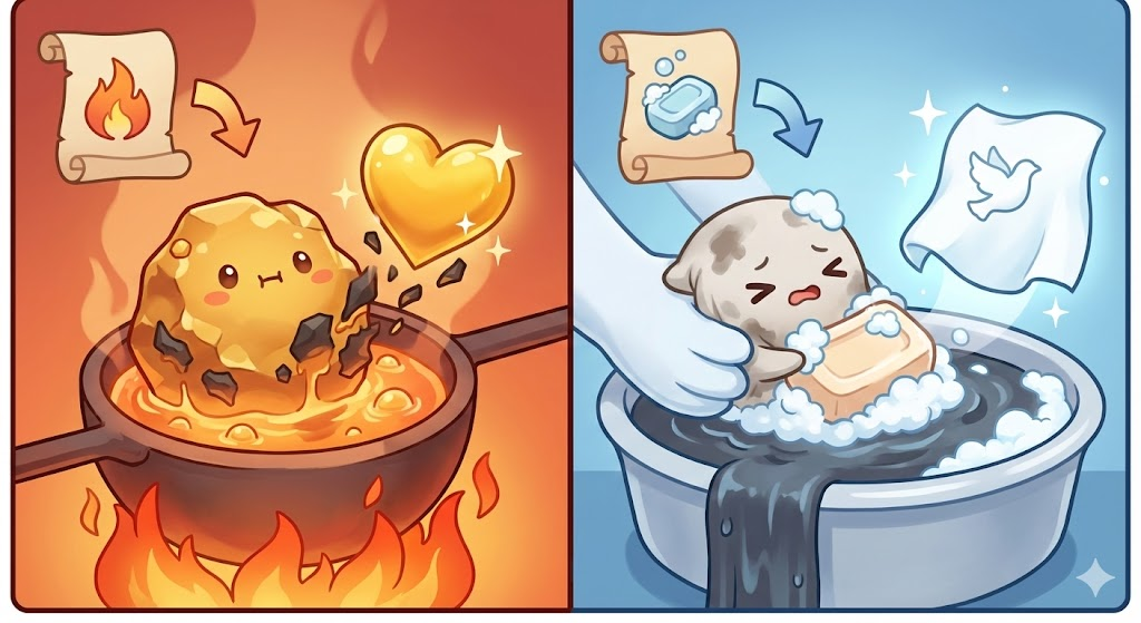 불은 금을 없애려는 게 아니라, 금에 붙어 있는 찌꺼기(Dross)만 태웁니다.