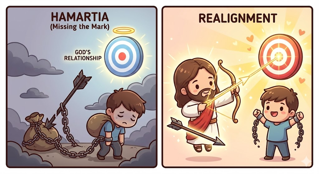하마르티아 (ἁμαρτία): 헬라어 원어로 '과녁을 빗나가다'라는 뜻을 가집니다.