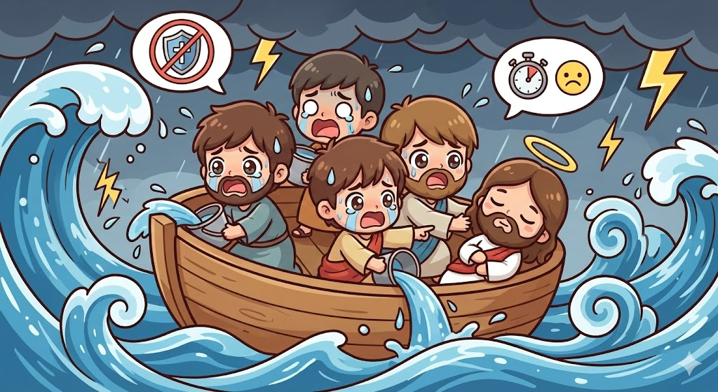 갈릴리 바다에 미친 듯한 광풍이 일었고, 배에는 물이 가득 차올라 가라앉기 일보 직전이었습니다.