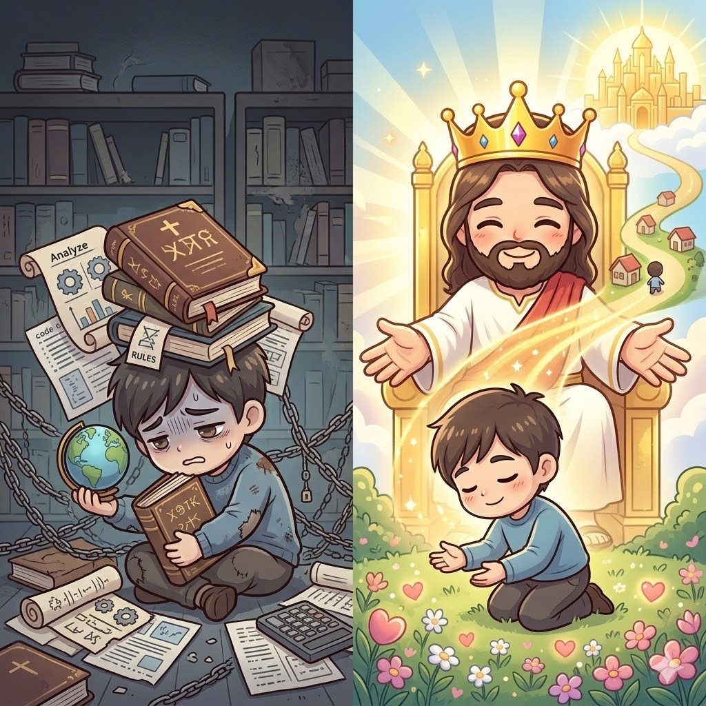 지금 당신의 신앙은 예수님을 분석하고 쥐고 있으려는 피곤한 종교입니까, 아니면 나를 이끌고 가시는 압도적인 왕의 통치 아래 머무는 안식입니까?