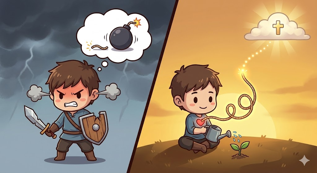 조급하게 화를 폭발시키지 말고, 감정의 도화선을 길게 늘이라는 것입니다.