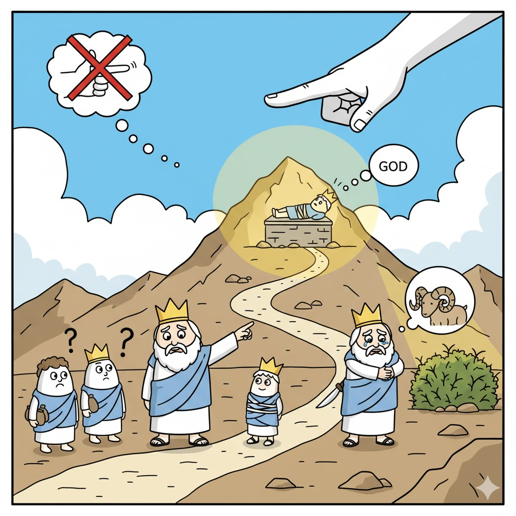 이것은 16장에서 '자식'이라는 '결핍'에 '관심'이 쏠려 '인간적인 꾀(하갈)'를 냈던 아브라함에게, 이제 '성취(이삭)'를 손에 쥔 '그 후에', 그의 '관심'이 '복'이 아닌 '복의 근원(하나님)'께로 완전히 정렬되었는지 '확인'하시는, '믿음의 조상'을 완성하는 '졸업 시험'이었습니다.