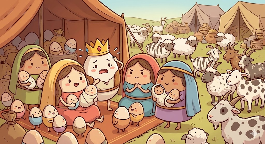 야곱의 가정에는 두 아내(자매)와 두 여종이 뒤엉켜 있습니다. 겉으로는 '아들을 낳는' 축복의 현장 같지만, 속은 썩어들어가고 있었습니다.