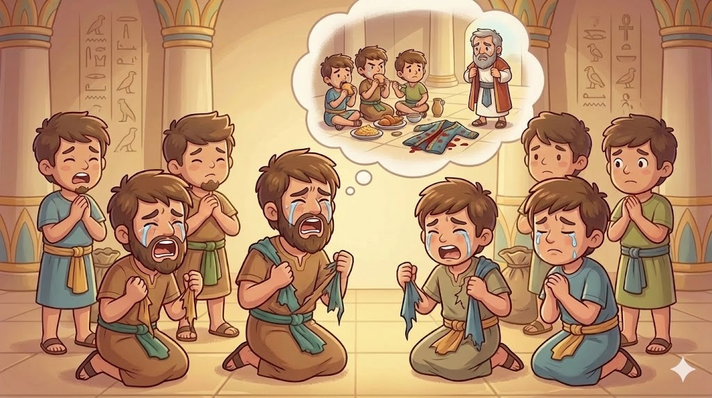 20년 전 요셉의 옷을 찢었던 형들이, 이제는 자신의 옷을 찢으며 통곡합니다.