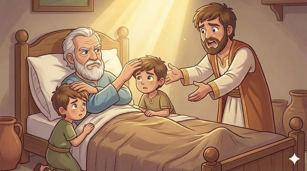 요셉은 말리려 했지만, 야곱은 "나도 안다"며 거절합니다.