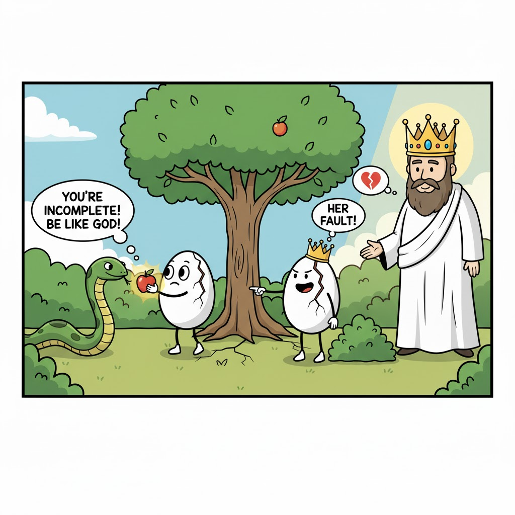 "너는 지금 부족해. 하지만 이 과일을 먹으면, 너도 '하나님처럼' 될 수 있어!"