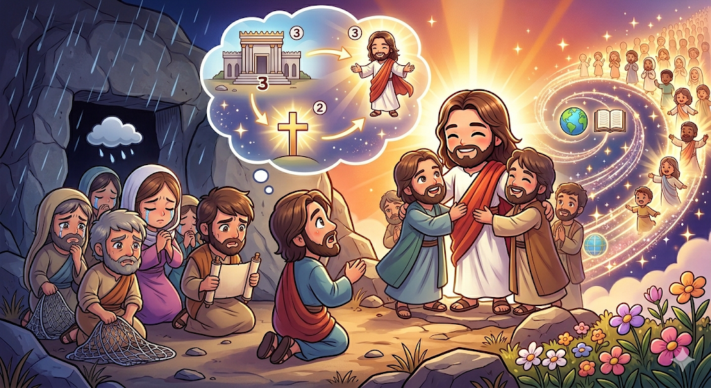 "아, 예수님이 하셨던 모든 말씀이 바로 이 십자가와 부활을 향한 이야기였구나!"