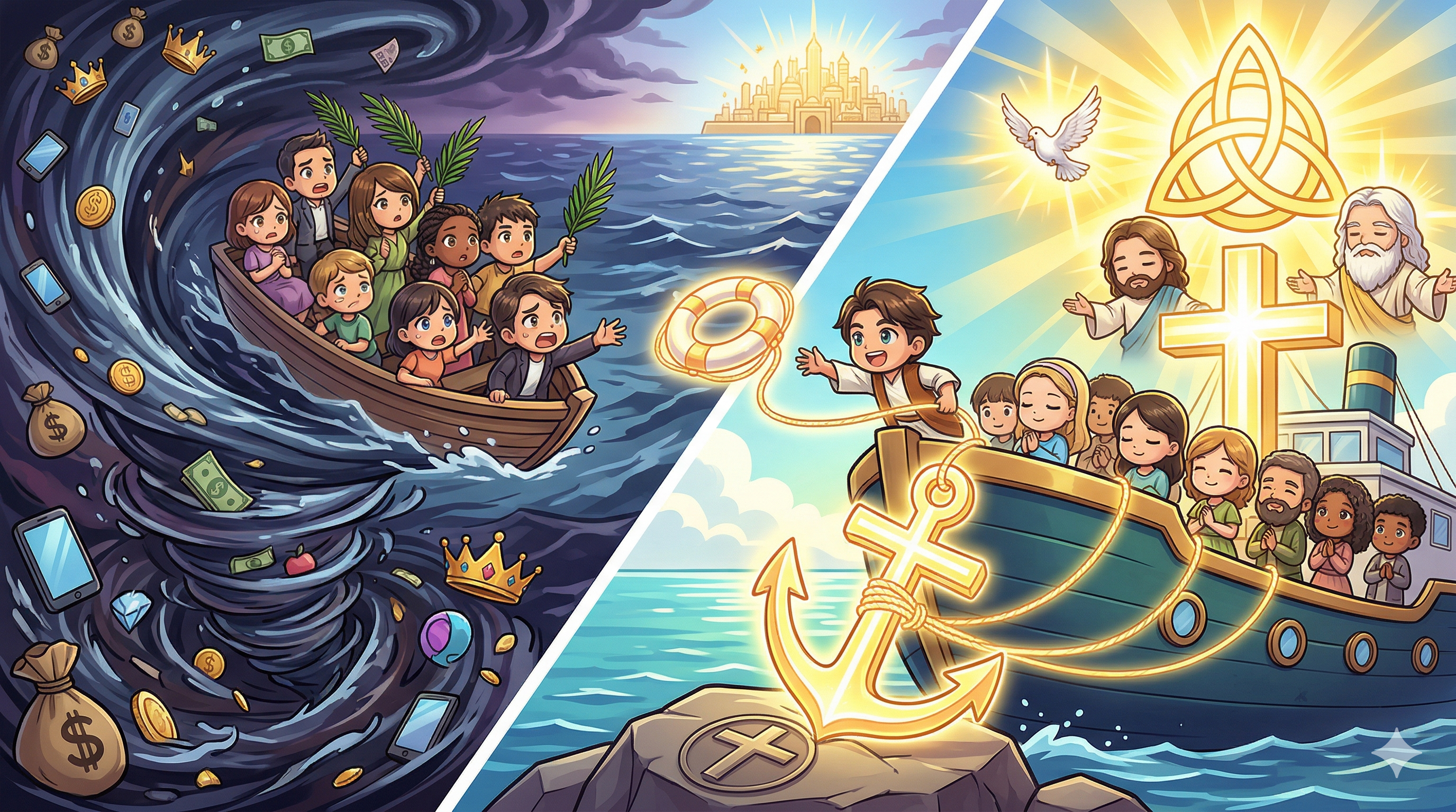 오늘 당신은 삼위일체 하나님의 걸작품인 큰 구원에 닻을 내리고 있습니까, 아니면 세상 나라의 욕망을 좇아 서서히 표류하던 종려주일의 군중과 같습니까?
